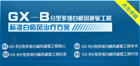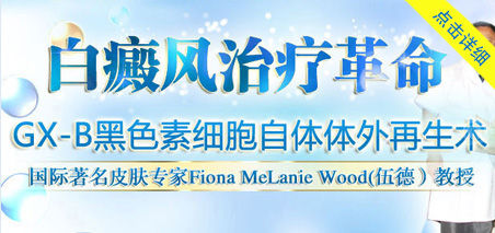 "GX-B黑色素细胞自体体外再生术主体是引进澳大利亚菲奥娜·梅拉妮·伍德教授的研究成果和专利临床细胞培养和细胞再生技术,综合目前国内主流的中西医治疗方法,主要应用于大面积治疗。这也是我省首次运用细胞再生技术治疗白癜风。成都白癜风医学研究院附属医院目前已运用该技术治疗十例白斑面积超过200平方厘米的白癜风患者,其中康复效果较好的有七例,这在大面积白癜风治疗上是一项突破。