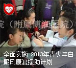 徐冰(化名),今年19岁,来自四川省自贡市贡井区的一个小村庄。父母是朴实的农民,靠种地维持全家人的生活,家里还有一个9岁的弟弟在读书。徐冰几年前患了乙肝大三阳,花费了大笔医疗费用;2012年4月,徐冰发现自己的左侧脸颊有一块白色斑点,当时没有在意,一个月后,白色斑点大了一倍,而且有向脖颈延伸的趋势...【详细】